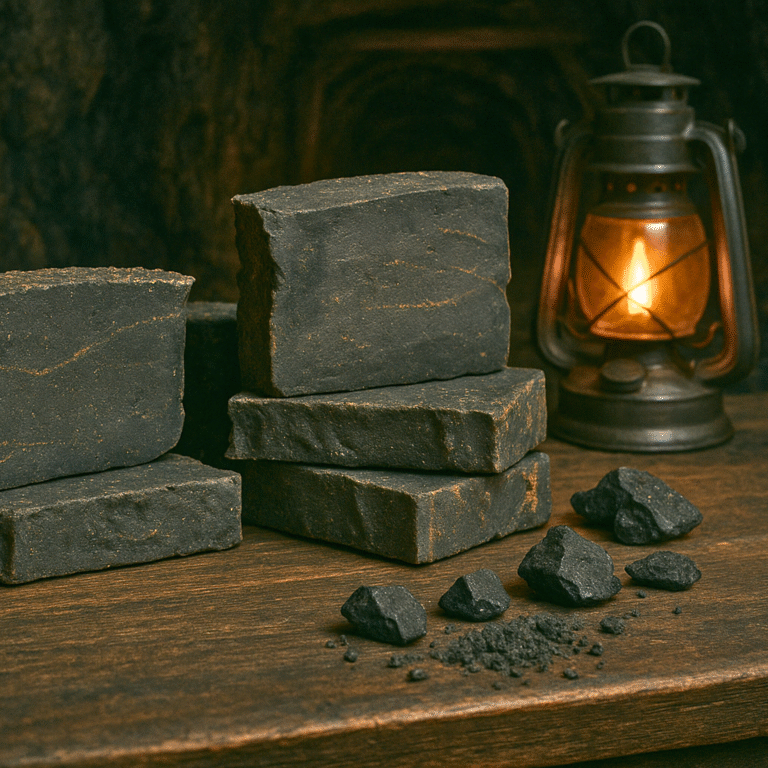 Handcrafted with natural deep-cleansing charcoal and traced with shimmering mica, this soap captures the grit of the mines with a touch of grace — reminiscent of minerals glinting in the coal seams. This bar smells as striking as it looks. Its fragrance is fresh and herbaceous, with notes of sage, fennel, and airy heather, while cedarwood essential oil adds a grounding finish. Bold, authentic, and elegant all at once, Coal Miner’s Daughter tells a story with every bar.